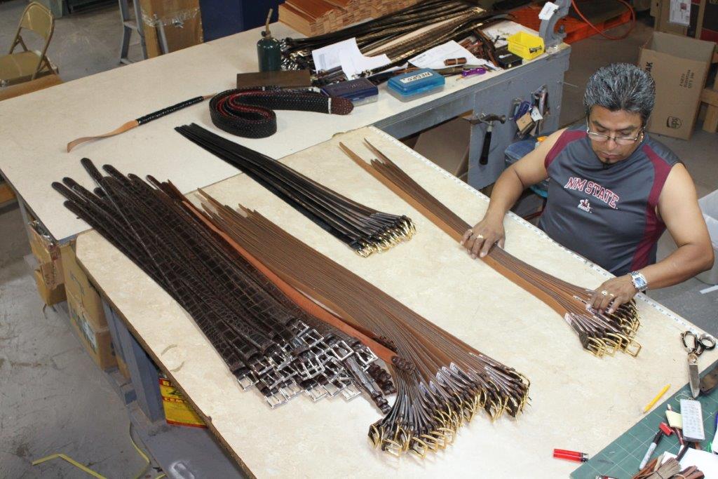 Magna Leather is the leading manufacturer of exotic skin belts in the United States. We have over 25 years of experience making the finest belts in the market. At Magna each belt is masterfully handcrafted in El Paso, Texas, by one of our 25 full-time artisans, each of them having more than 15 years of experience in the field. Our continued success is due to the combination of unparalleled skilled workmanship, the finest raw materials available, and our high quality standards.
